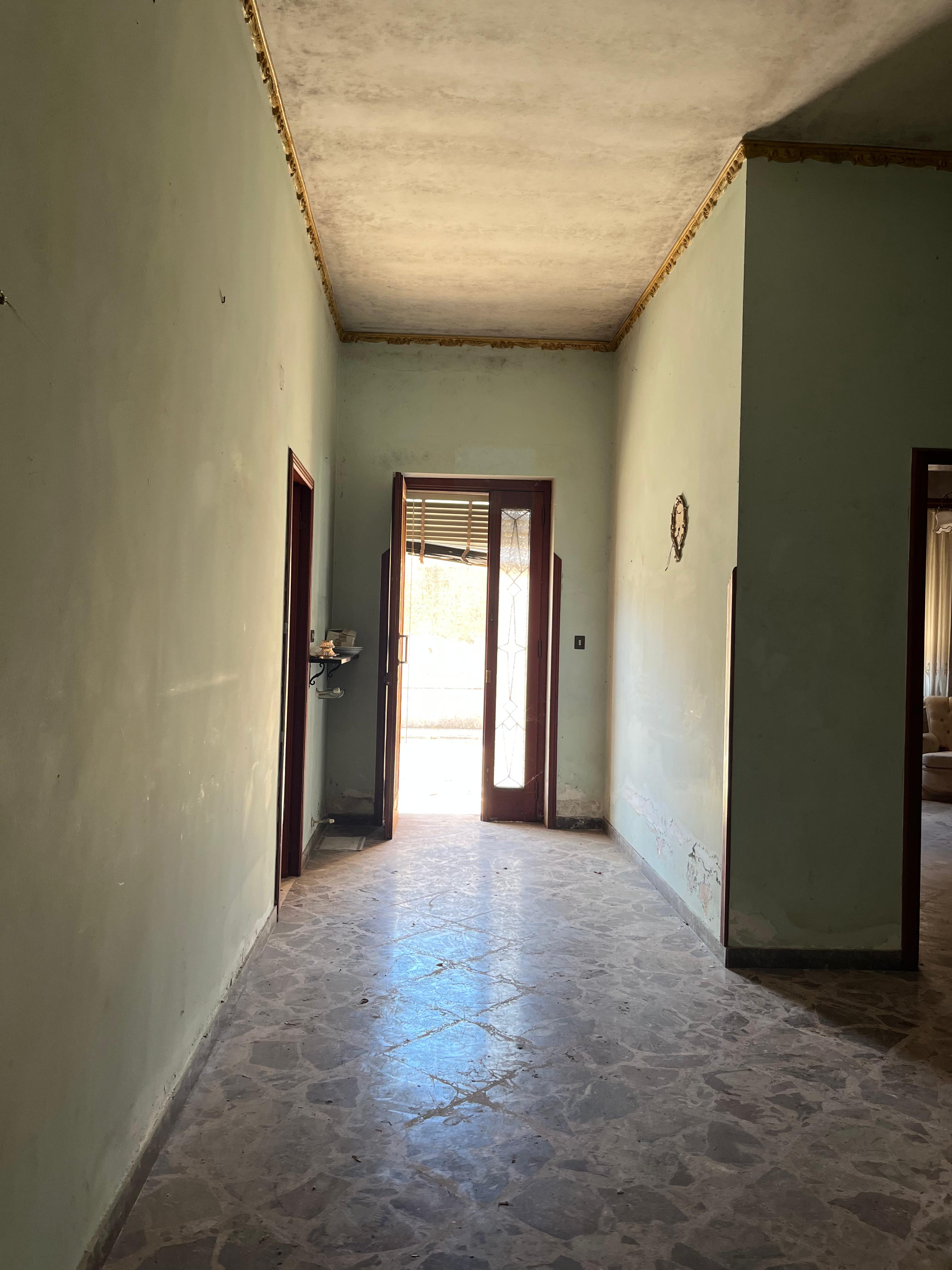 Con accesso da verandina, l’abitazione si compone di ingresso, soggiorno, due camere da letto, camera da pranzo, cucina abitabile, ripostiglio, ampio disimpegno, due garage di cui uno con scala che porta sul lastrico solare, un altro di grandi dimensioni e cortile retrostante di circa 42 mq.